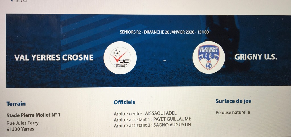 VICTOIRE 2-0 de L'équipe fanion R 2 qui recevait GRIGNY au stade Mollet de Yerres / match à 15 h