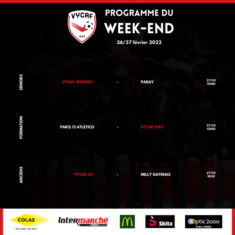 Voici le programme de cette fin de semaine avec trois matchs officiels. Un 8e de finale de Coupe d'Essonne notamment au stade Pierre Mollet ce dimanche pour notre équipe fanion ⚽️