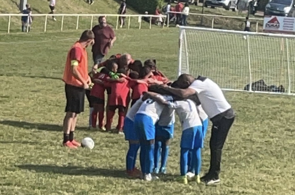 C’est l’heure d’en découdre avec Montfermeil, équipe essentiellement composée de U 9, match en 2 fois 6 mn. Le cri de guerre de mes joueurs laisse présager qu’ils vont tout donner.
